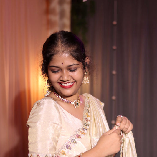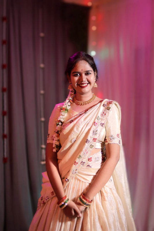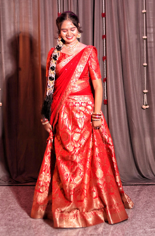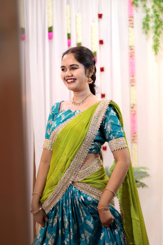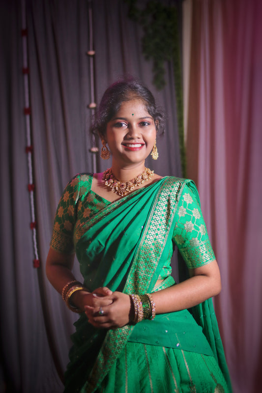 Custom-Dyed Banarasi-Style Half Saree with Fine Zari Weaving & Premium Stitching