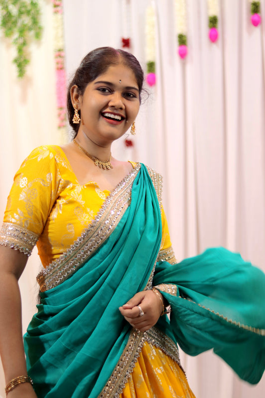 Elegant Yellow & Rama Green Half-Saree – Deeprastore