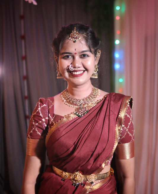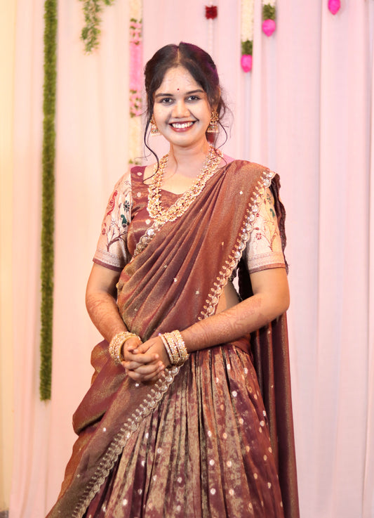 Pythani Brown Half Saree – Fully Customised with Blouse & Dupatta | Made-to-Order