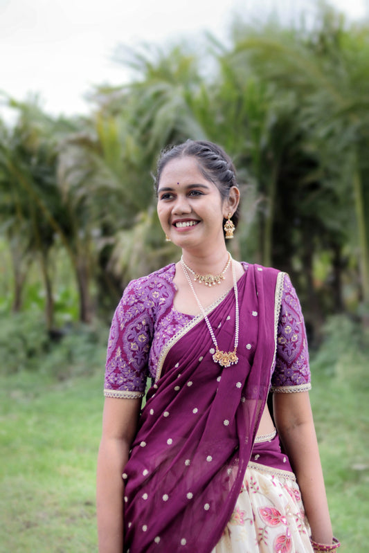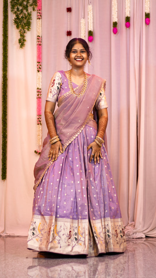 Pythani Lavender Half Saree – Fully Customized with Blouse & Dupatta | Made-to-Order