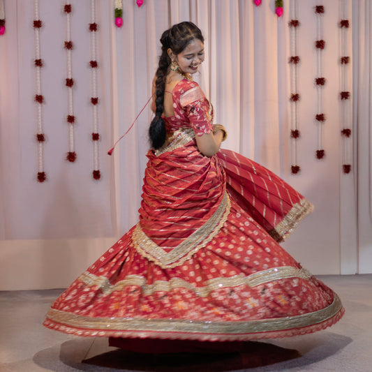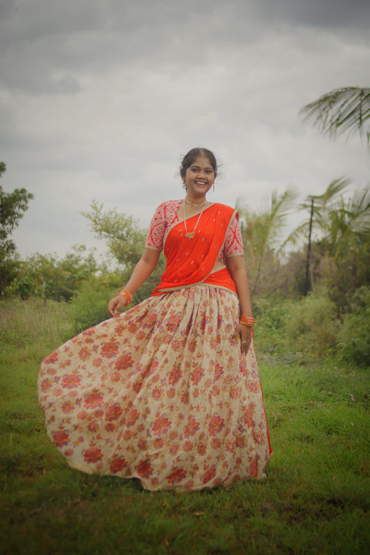 Regal Orange Pythoni Half Saree – Fully Customised with Blouse & Dupatta | Made-to-Order